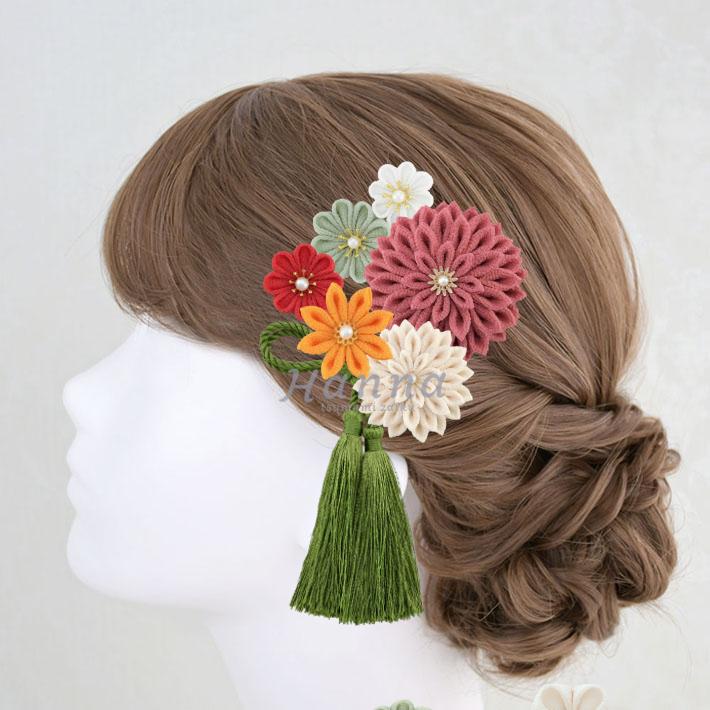 その日のヘアスタイルによって自由に一輪一輪配置できます。つまみ細工の数が多い場合でも、アメピンを追加して簡単にしっかりと固定できます。