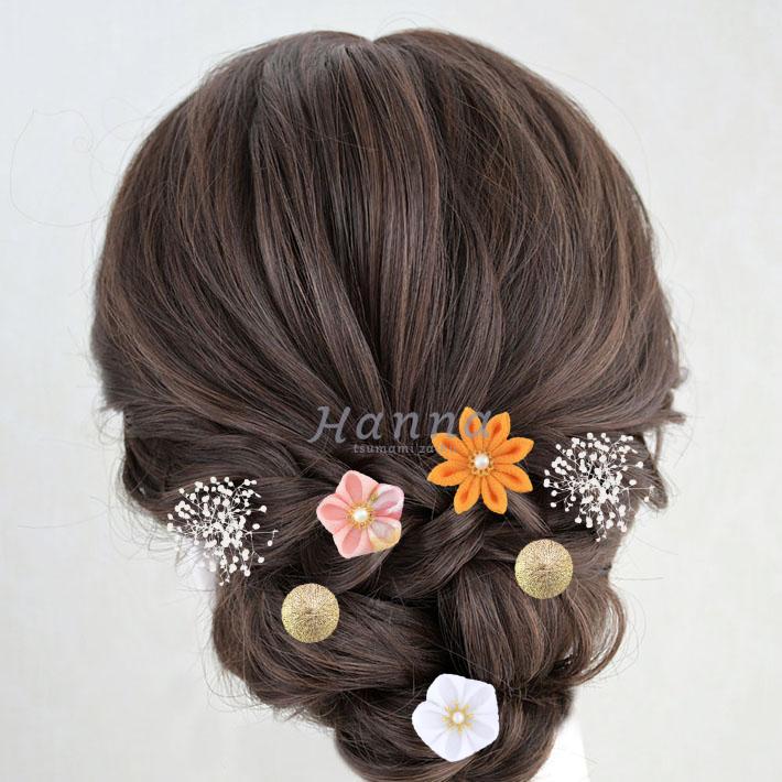 その日のヘアスタイルによって自由に一輪一輪配置できます。つまみ細工の数が多い場合でも、アメピンを追加して簡単にしっかりと固定できます。