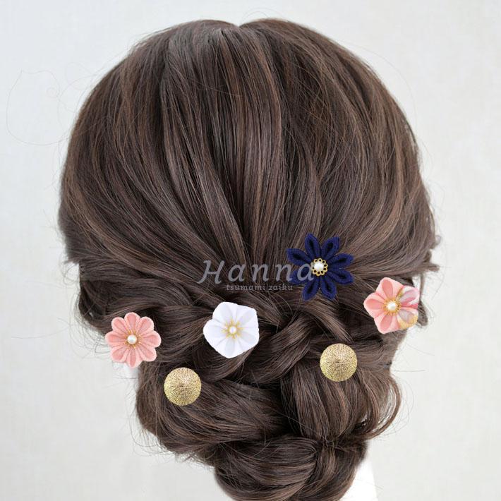 その日のヘアスタイルによって自由に一輪一輪配置できます。つまみ細工の数が多い場合でも、アメピンを追加して簡単にしっかりと固定できます。