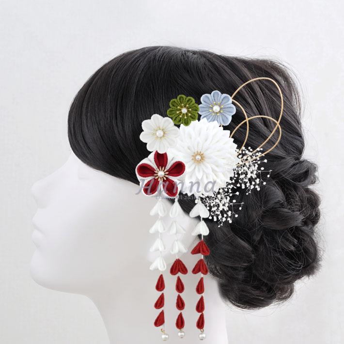 その日のヘアスタイルによって自由に一輪一輪配置できます。つまみ細工の数が多い場合でも、アメピンを追加して簡単にしっかりと固定できます。