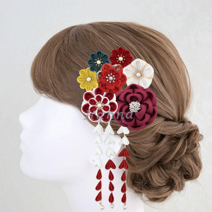 その日のヘアスタイルによって自由に一輪一輪配置できます。つまみ細工の数が多い場合でも、アメピンを追加して簡単にしっかりと固定できます。