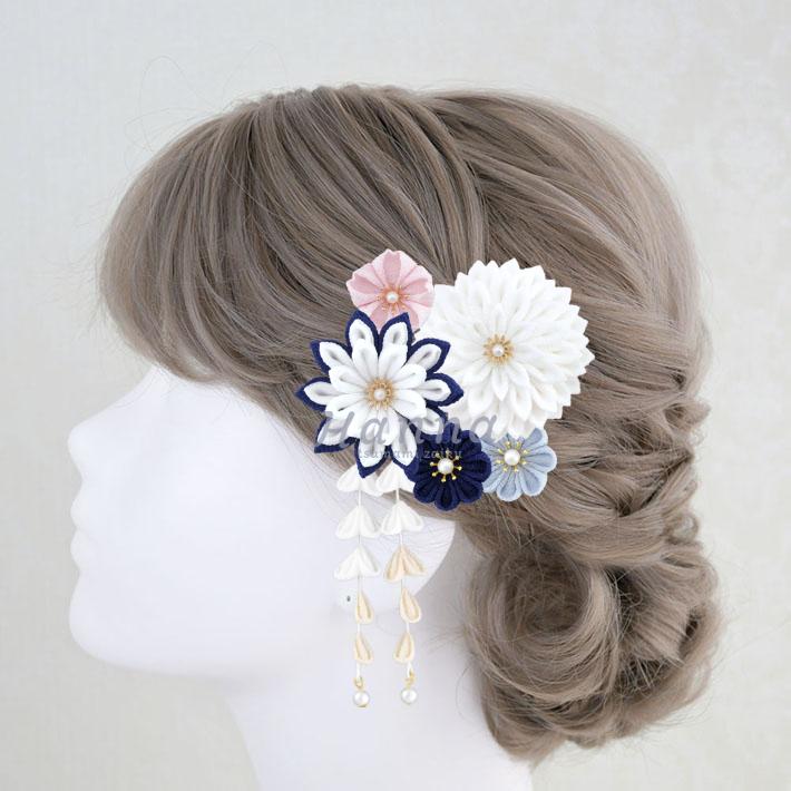 その日のヘアスタイルによって自由に一輪一輪配置できます。つまみ細工の数が多い場合でも、アメピンを追加して簡単にしっかりと固定できます。
