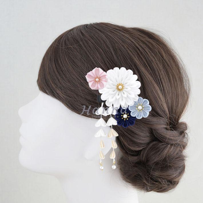 その日のヘアスタイルによって自由に一輪一輪配置できます。つまみ細工の数が多い場合でも、アメピンを追加して簡単にしっかりと固定できます。