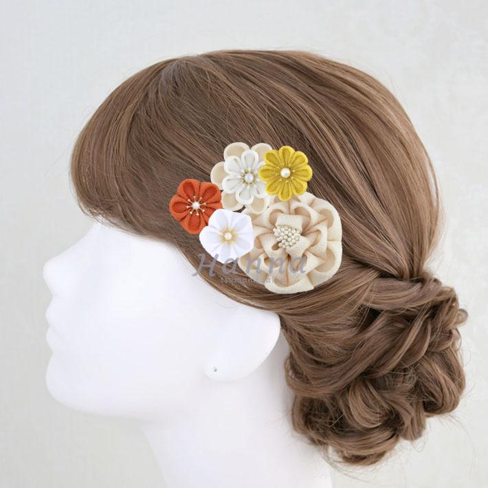 その日のヘアスタイルによって自由に一輪一輪配置できます。つまみ細工の数が多い場合でも、アメピンを追加して簡単にしっかりと固定できます。