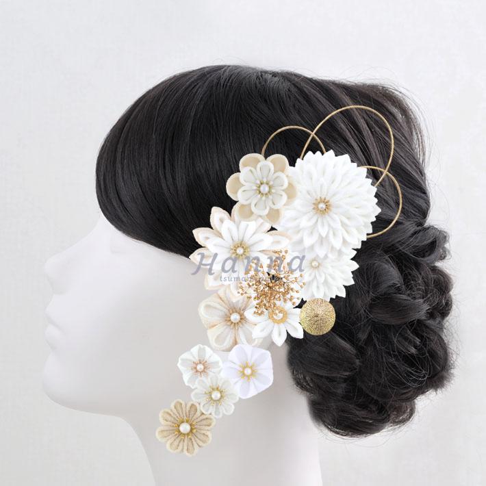その日のヘアスタイルによって自由に一輪一輪配置できます。つまみ細工の数が多い場合でも、アメピンを追加して簡単にしっかりと固定できます。