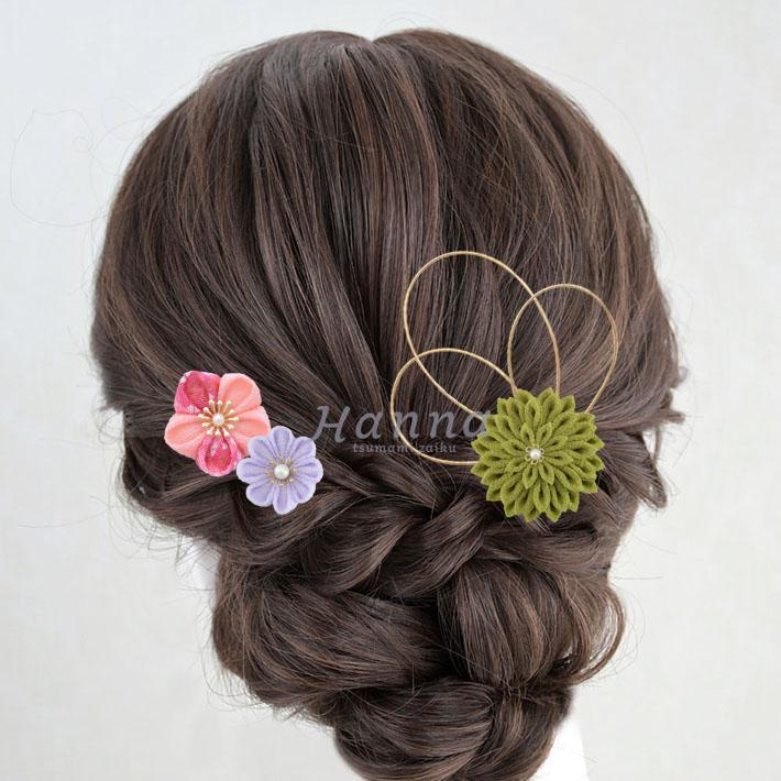 その日のヘアスタイルによって自由に一輪一輪配置できます。つまみ細工の数が多い場合でも、アメピンを追加して簡単にしっかりと固定できます。