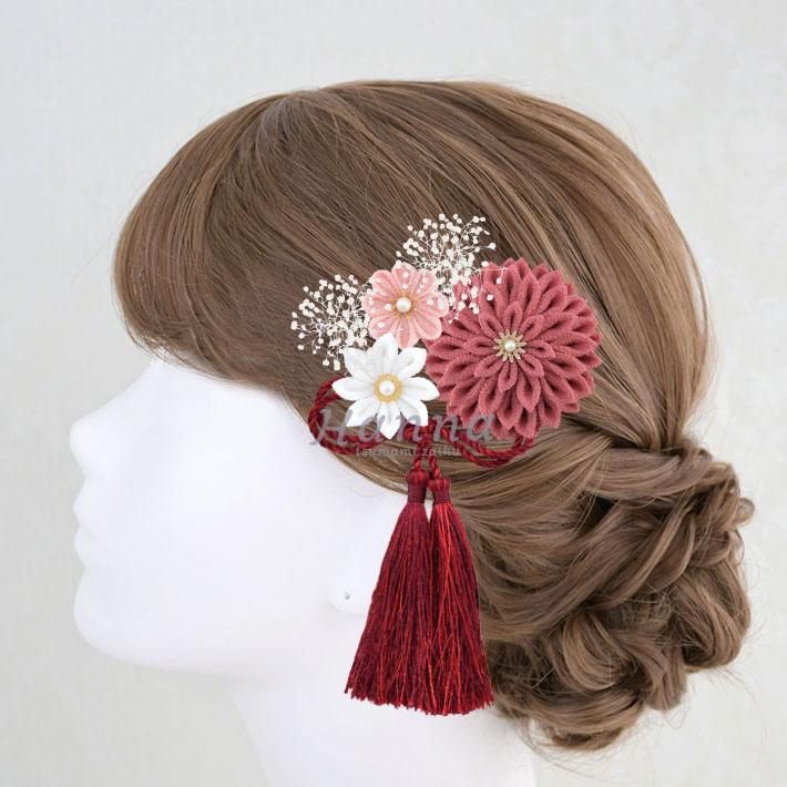 その日のヘアスタイルによって自由に一輪一輪配置できます。つまみ細工の数が多い場合でも、アメピンを追加して簡単にしっかりと固定できます。